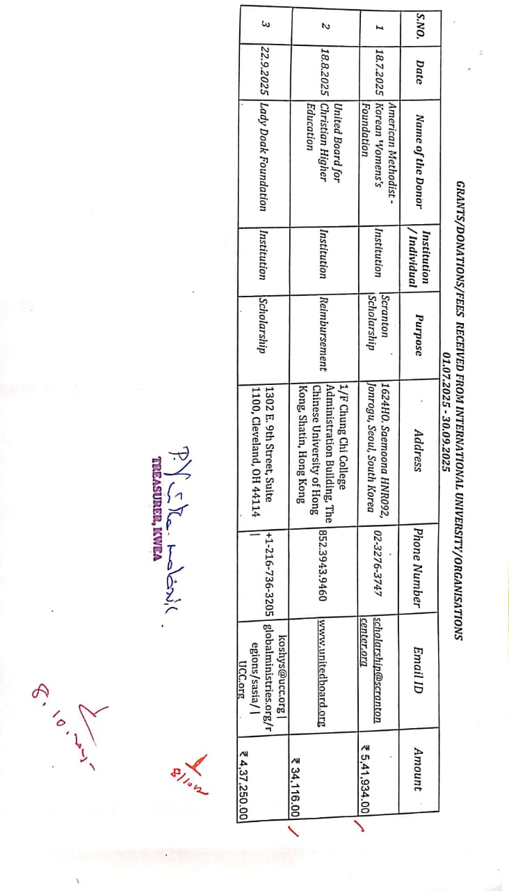 Grants/Donations/Fees received from International University/Organisation 1st July 2025 to 30th September 2025