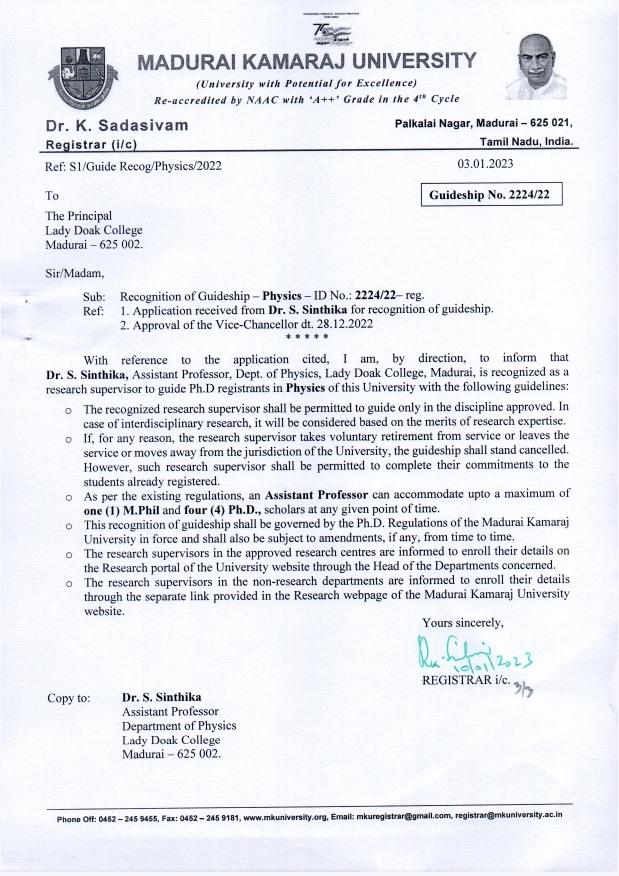 | 31 | Dr.S. Sinthika, Assistant Professor | Department of Physics | 2224/22 | Physics |